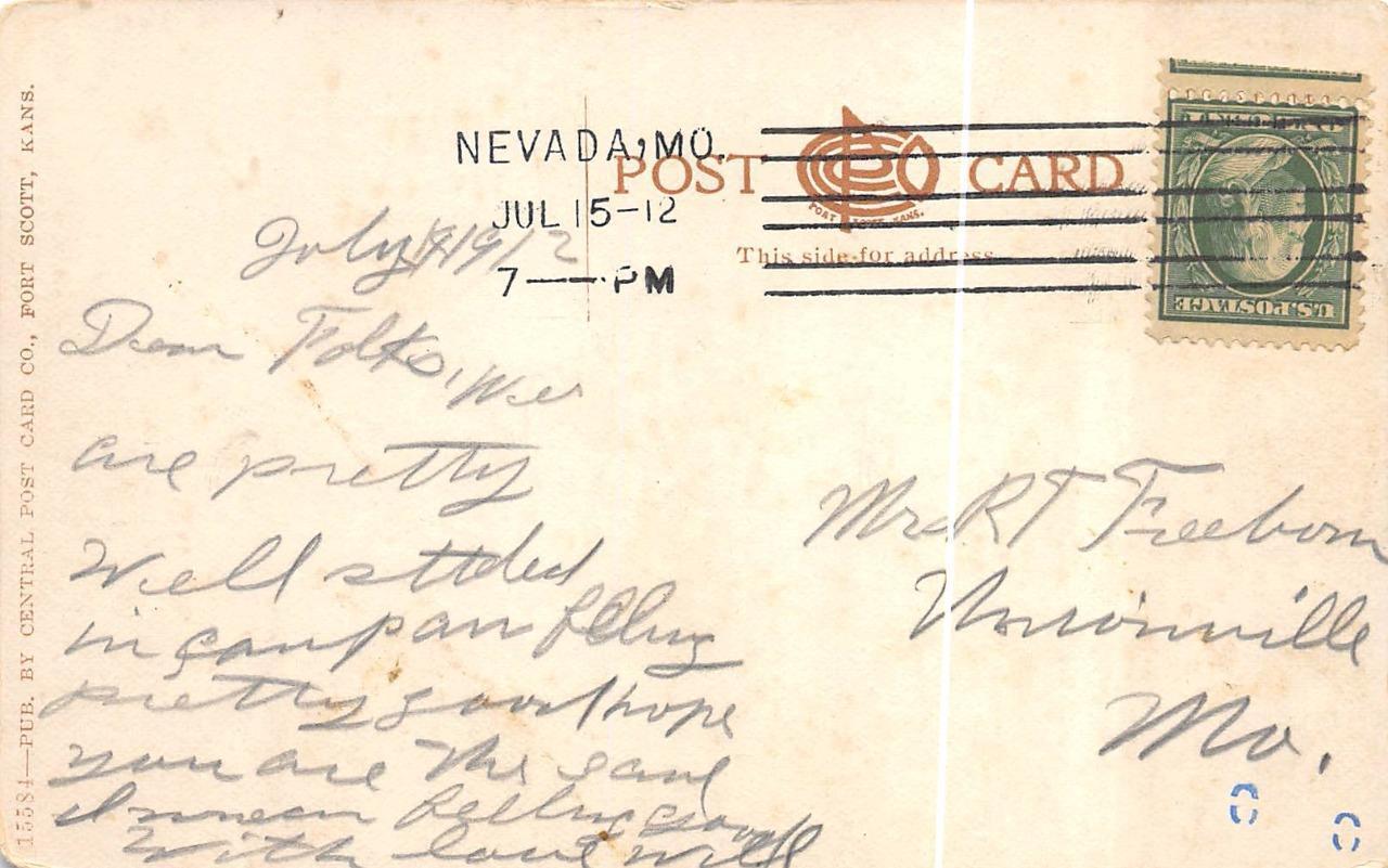 NEVADA, MO MISSOURI N.G.M ARMORY 1912 POSTCARD