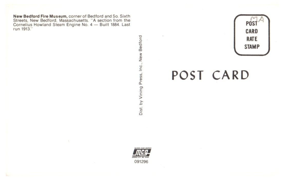 New Bedford Fire Museum Massachusetts Postcard