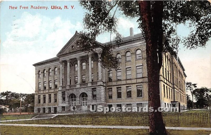 New Free Academy - Utica, New York Postcard - 1911 Grade: 2 Size: R - Regular size: Approx 3 1/2 X 5 1/2 inch (9 cm X 14 cm) Grading Scale: Grade 1 = Perfect corners Grade 2 = Very Minimal corner wear, no crea ... Read More