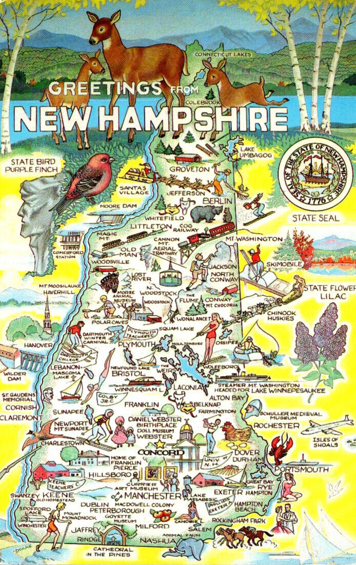 New Hampshire Greetings With State Map 1989