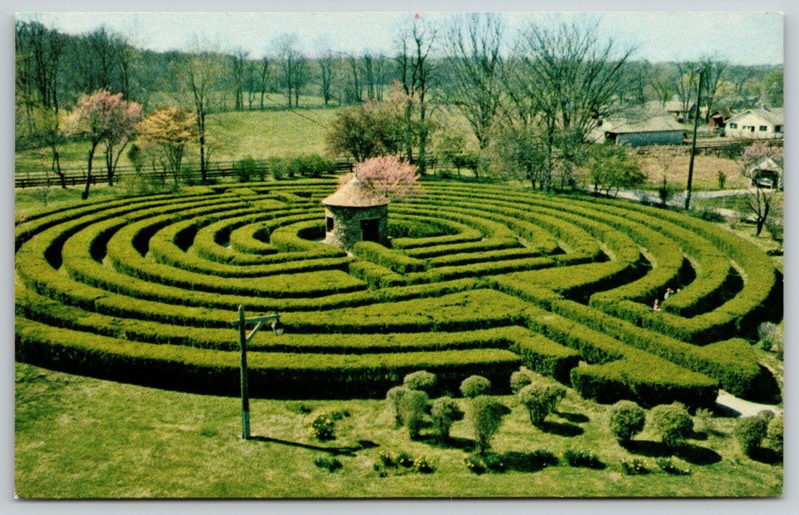 New Harmony Indiana~Rappite Formal Gardens~Labyrinth~Temple in Center~c1956 PC