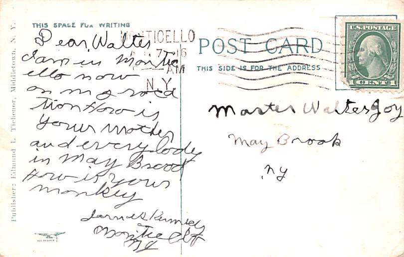 New High School Monticello New York Postcard Postal Date: 1916 Grade: 3 Size: Regular Size Postcard - approximately 3 1/2 inch x 5 1/2 inch (9 CM x 14 CM) Grading Scale: Grade 1 = Perfect corners Grade 2 = Ve ... Read More