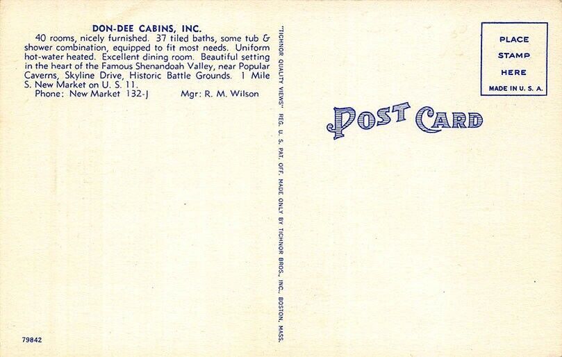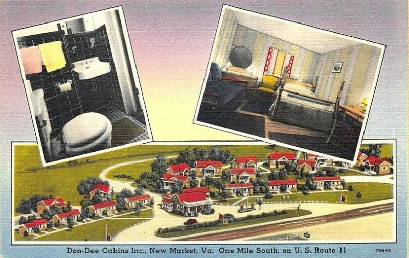 New Market VA Don-Dee Cabins Multi-View, linen postcard.THIS POSTCARD, IS AN ORIGINAL AND NOT A COPY.For More Great Postcards, Trade Cards, Covers, etc. Visit our Hip Store: popcornjohn.cominkfrog terapeak