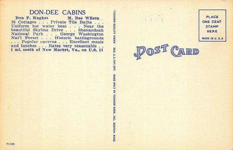 New Market VA Don-Dee Cabins U. S. Route 11 Multi-View, linen postcard.THIS POSTCARD, IS AN ORIGINAL AND NOT A COPY.For More Great Postcards, Trade Cards, Covers, etc. Visit our Hip Store: popcornjohn.cominkfrog terapeak