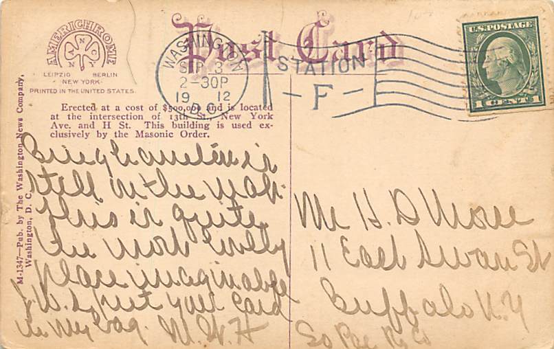 New Masonic Temple Washington, DC USA 1912