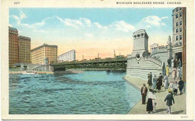 NEW MICHIGAN BLVD BRIDGE Chicago 1920 POSTCARD