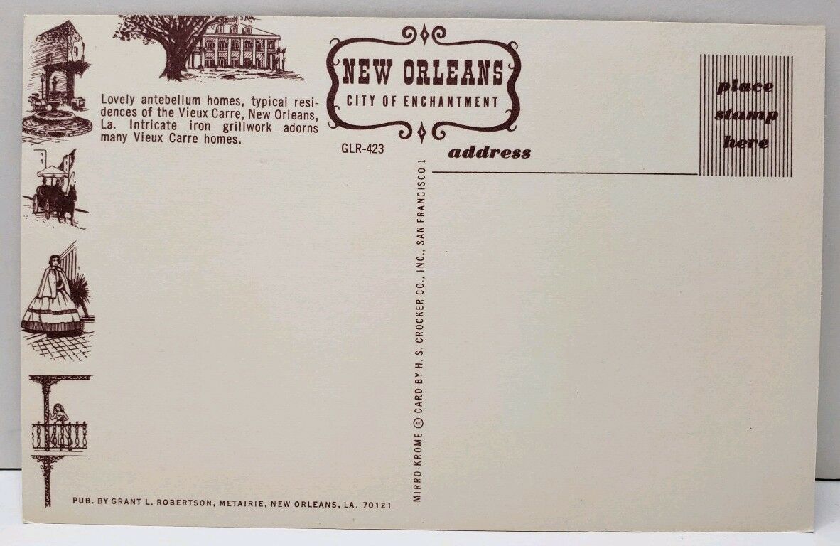 New Orleans Antebellum Homes Iron Grillwork Postcard A7