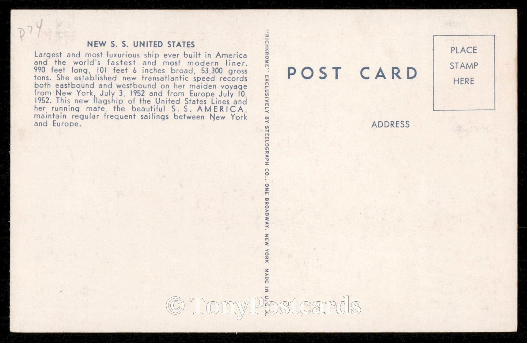 Title: NEW S. S. UNITED STATES Condition: See scans