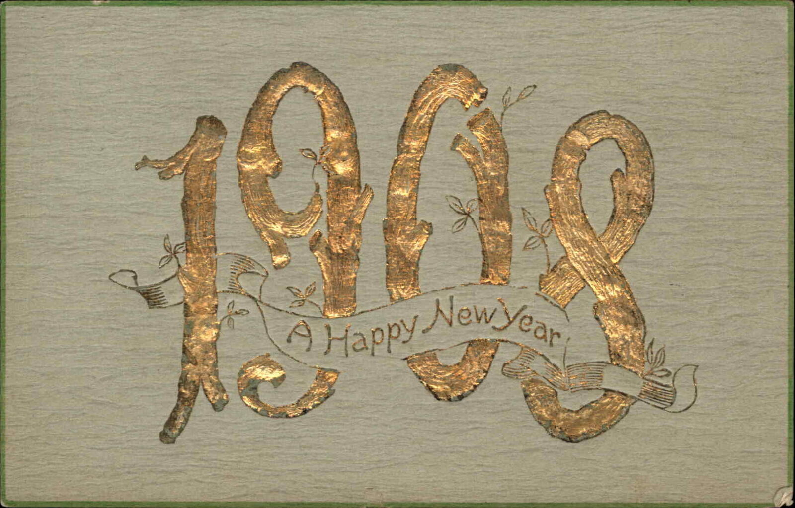New Year 1908 Gilt Embossed Rotograph Vintage Postcard