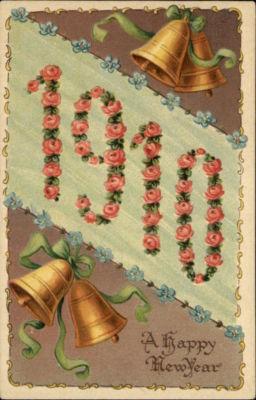 NEW YEAR Bells & Flowers c1910 Embossed PC