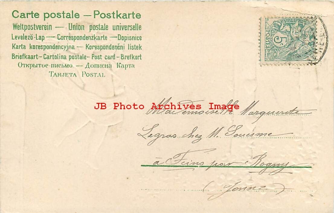 New Year, Bonne Annee, Cupid Throwing Arrows at Hearts Product Photo Click Image for Larger Preview Product Information This is a nice vintage early printed New Year postcard showing cupid throwing arrows at hearts. Publisher: Unknown. The corners have light wear. The upper left corner has a crease. The image is nice and clean. Postally used. Shipping and Payment TERMS OF SALE: We Do Combine Shipping on Orders. Please wait for a combined Hip invoice with one shipping charge so that you can make one payment. Payment is due within three business days after closing of the auction or sale. Postage & Handling: We Do Combine Shipping on Orders. Please wait for a combined Hip invoice with one shipping charge so that you can make one payment. Orders of single postcards under $14.99 is $2.50 for postage and handling. Orders of single postcards $14.99-74.99 is $5.00 for postage, tracking and handling. All Orders $75.00 and greater may have additional postage, tracking and handling. International shipping is $4.50 for orders under $65. For orders $65 or higher there can be additional charges per listing so that the item can be mailed with tracking or USPS Registered Mail. Combining lots or group lots may be additional depending upon the weight of the package and number of payments. Large Group Lots and other items having specific shipping charges as per the listing. RETURN POLICY All items come with an unconditional 30-day return privilege. Each returned item must be in its original undamaged condition, shipped in the original hard sleeve and should be accompanied by a copy of our invoice. Any returned item should be shipped fully insured for your protection. We use AuctionHelper ! Guaranteed to sell more of your items!