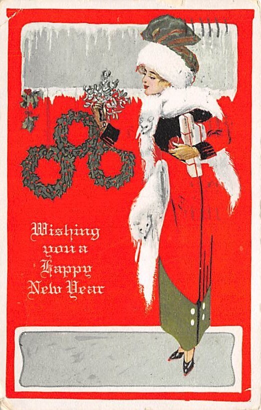 New Year Fade Away Postcard 1915, Grade: 3, postal marking on front, Size: Regular size: Approx 3 1/2 X 5 1/2 inch (9 cm X 14 cm) Grading Scale: Grade 1 = Perfect corners Grade 2 = Very Minimal corner wear, no ... Read More