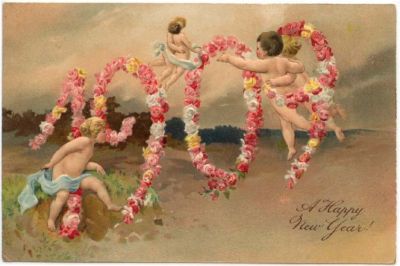 New Year Greetings PC, 1909 Year Date, Cherubs, PFB