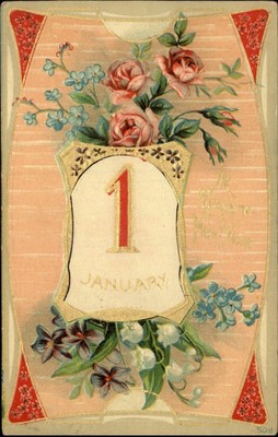 New Year Roses Blue & Purple Flowers Gilt Embossed c1910 ...