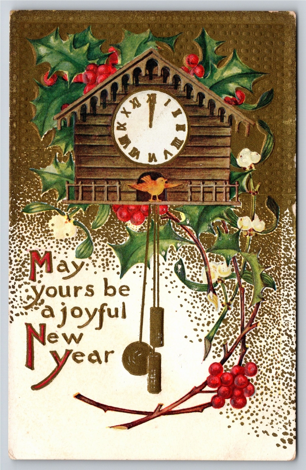 New Year~Mistletoe~Coo Coo Clock~Orange Bird~Vintage Postcard