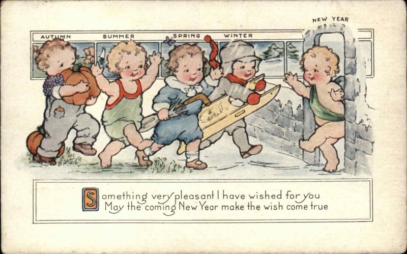 New Year's Children Sled Angels Embossed Whitney c1910s Postcard