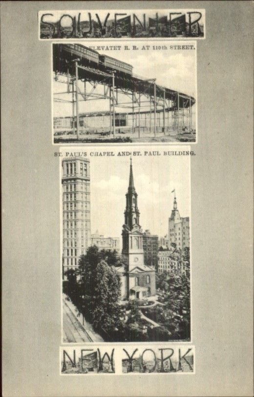 New York City 110th St. RR & Chapel Split-View c1905 Postcard