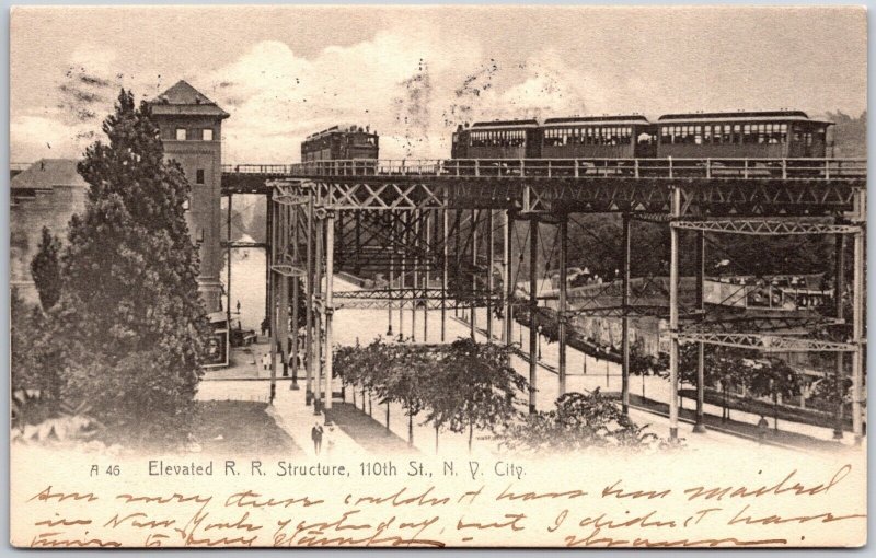 New York City, 1906 Elevated Railroad Structure 110th St., Train, Postcard