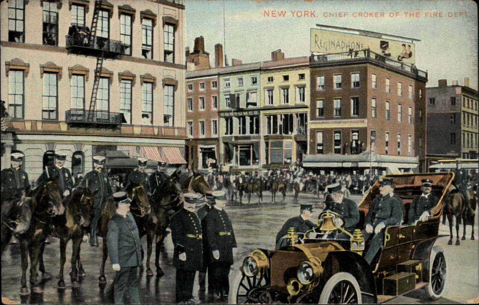 NEW YORK CITY NYC Fire Chief Croker in Old Fire Engine c1910 Postcard