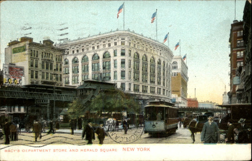NEW YORK CITY Trolley Street Scene MACY'S c1910 Postcard