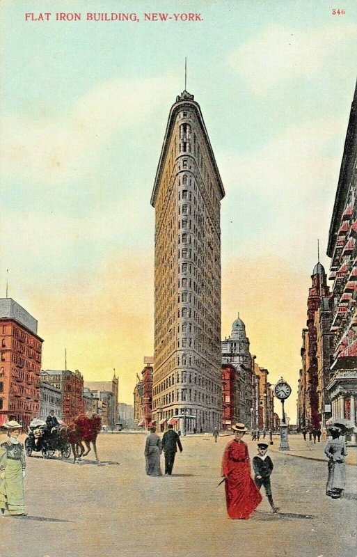 NEW YORK CITY~FLATIRON BUILDING-GROUND LEVEL VIEW~1910s POSTCARD