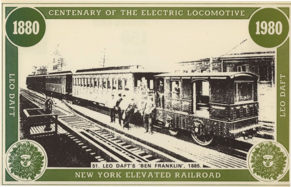 New York Elevated Railroad Leo Dafts Ben Franklin Train Postcard