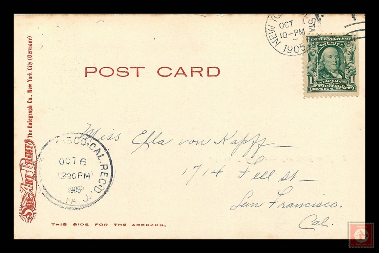 Some scans of postcards result in colored streaks which are a result of the error in scanning and not a fault of the postcard.