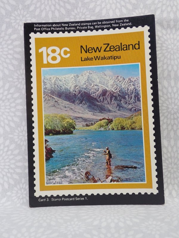 A nice postcard showing vintage New Zealand stamp!Overall condition is good for age.