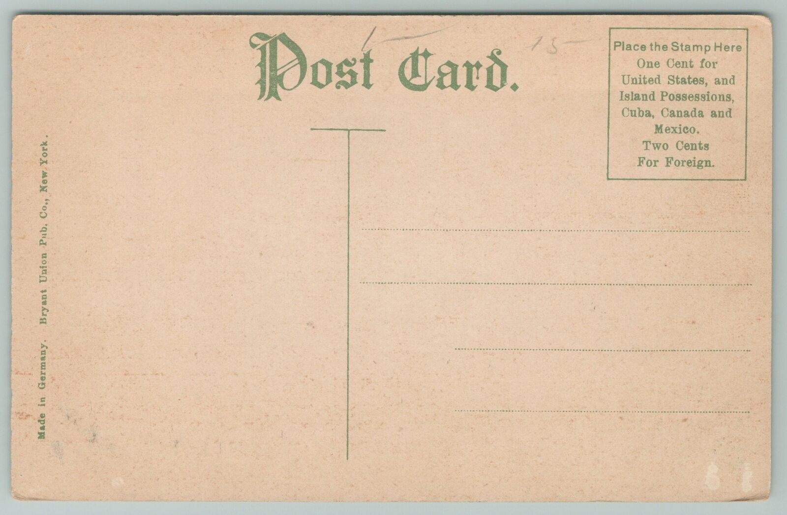 Using the photo magnifier, please examine photos carefully, both front and back, for flaws. The back will sometimes reveal nicks or bends that you cannot see from the front. Double-click the image for super size photo. Colored lines are from the scanner and are not on the postcard