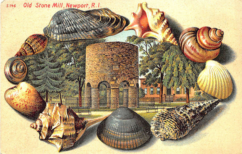 Newport RI Langsdorf Publisher Shell Border "Old Stone Mill", postcard.