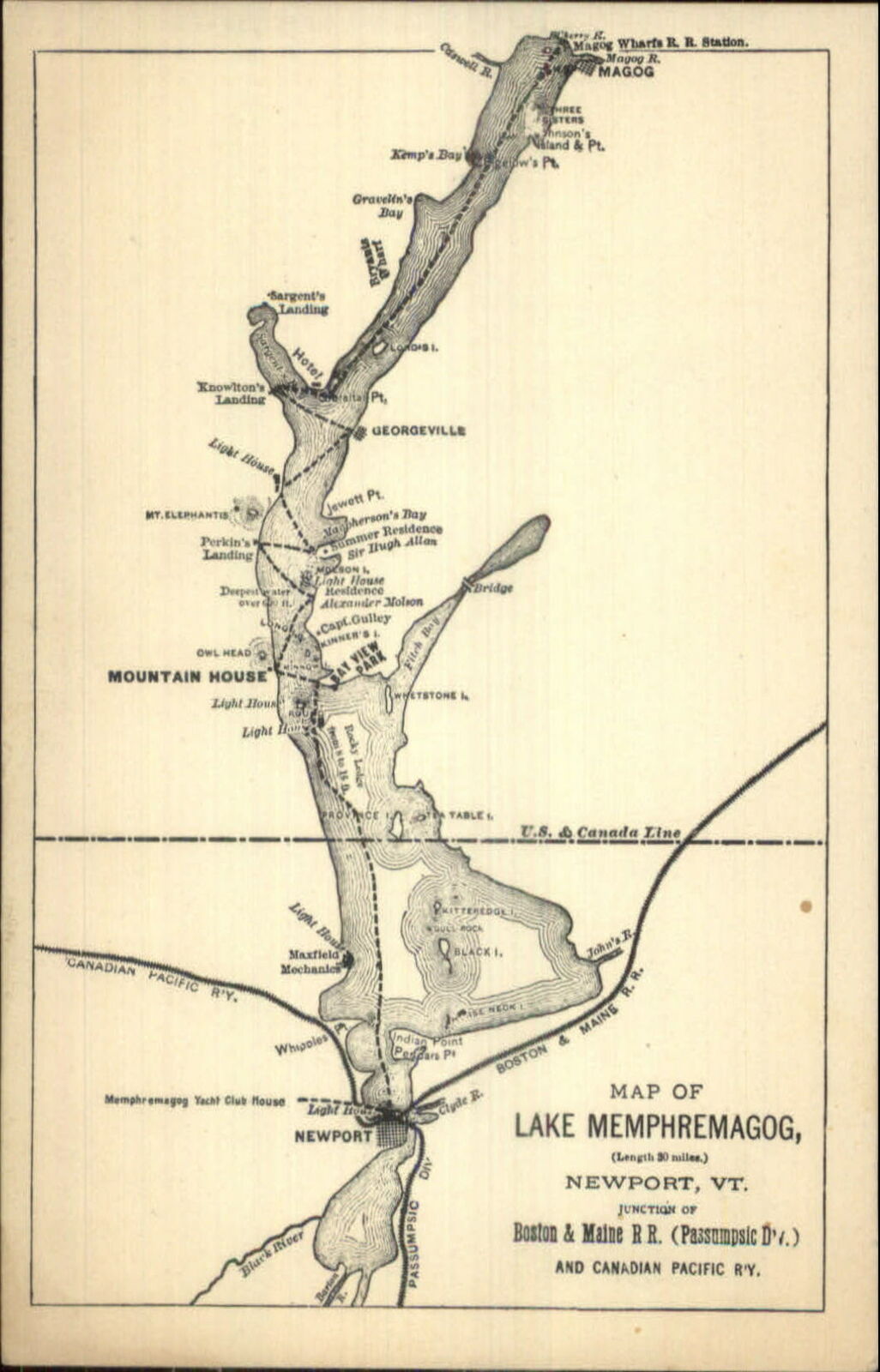 Newport VT Area Lake Memphremagog MAP c1910 Postcard