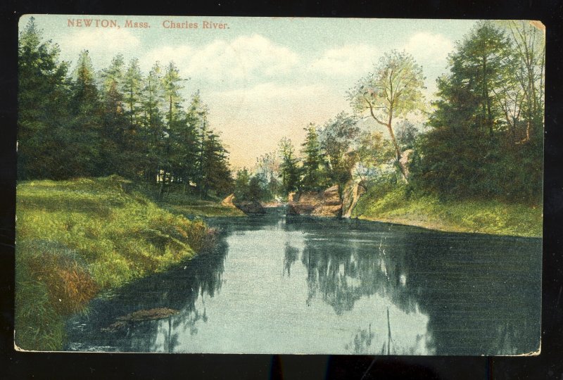 Newton, Massachusetts/Mass/MA Postcard, Charles River, 1908!