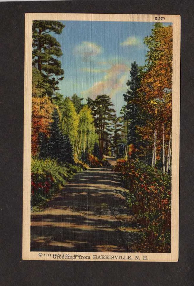 NH Greetings From Harrisville New Hampshire Linen Postcard Dirt Road