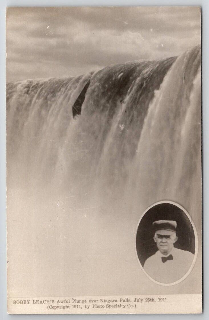 Niagara Falls Daredevil Bobby Leach Awful Plunge And Portrait RPPC Postcard N24