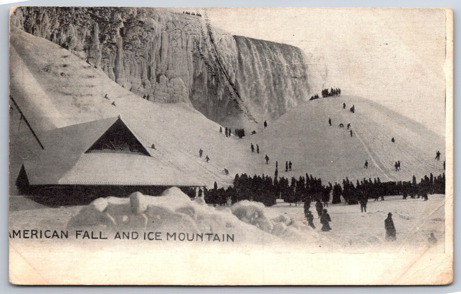 Niagara Falls New York~American Falls & Ice Mountain B&W~Vintage Postcard