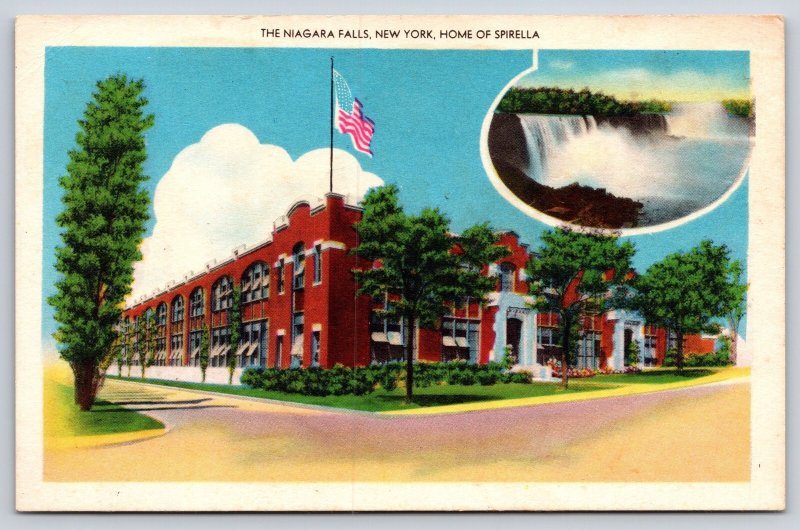 Niagara Falls New York~Spirella Clothing Co Bldg~Waterfall~USA Flag~Linen PC