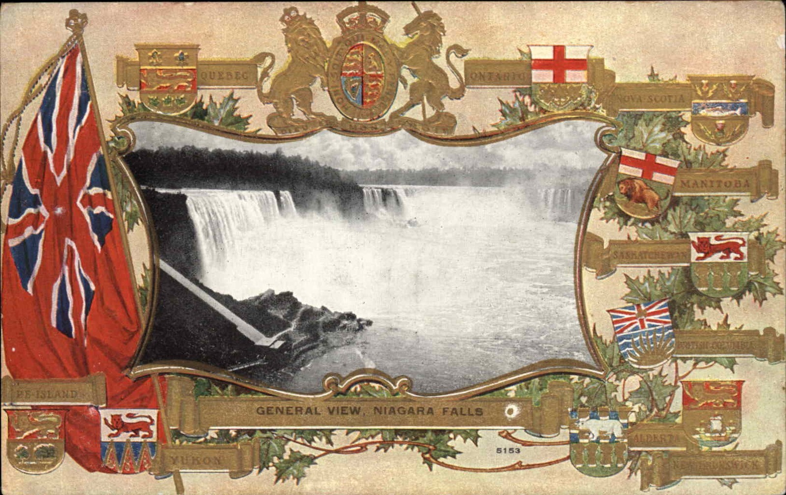 Niagara Falls Ontario Waterfall Flag Crest Shield Gilt Embossed Vintage Postcard