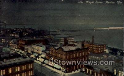 Night Scene - Racine, Wisconsin Postcard - Unused