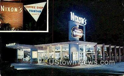 Nixon's Family Restaurant - Whittier, CA Postcard - 1956 Grade: 2 Size: R - Regular size: Approx 3 1/2 X 5 1/2 inch (9 cm X 14 cm) Grading Scale: Grade 1 = Perfect corners Grade 2 = Very Minimal corner wear, n ... Read More