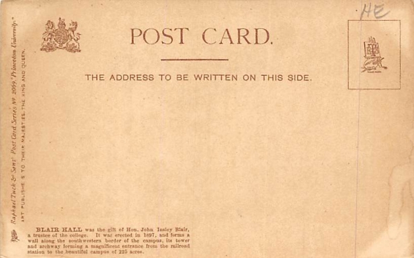 nj_zz_09853: nj-princeton Year Date of Postcard, or Postal Used / Year Used: Unused Grade: 4 Size: Grading Scale: Grade 1= Perfect corners Grade 2= Very Minimal corner wear, no creases Grade 3= Some corner wea ... Read More