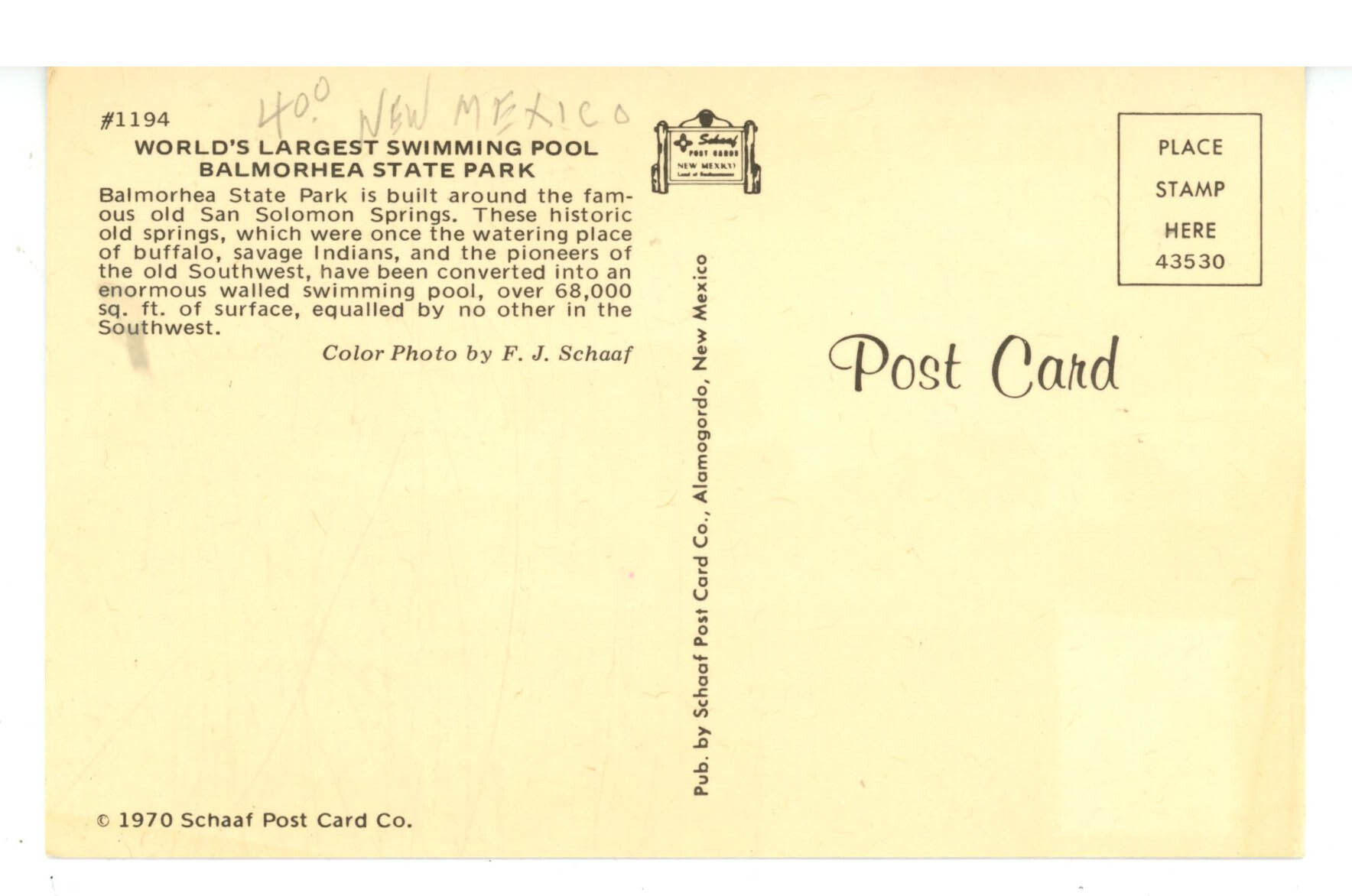 NM - Balmorhea State Park. World's Largest Swimming Pool © 1970