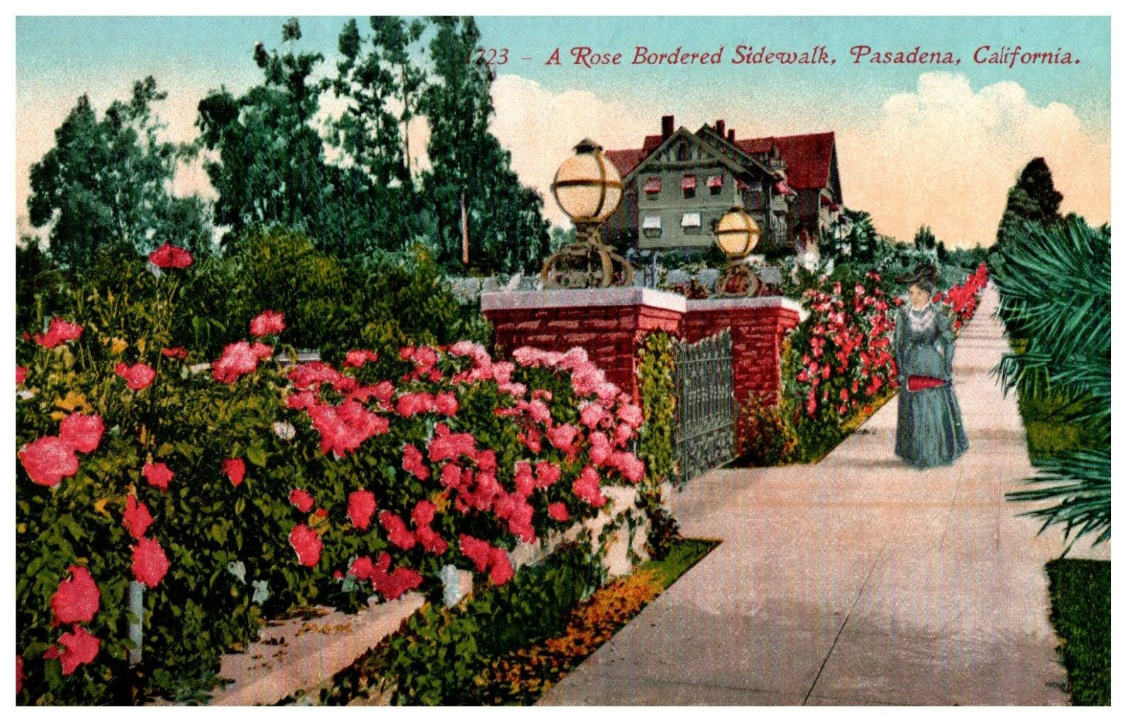 No. 1723 Rose Bordered Sidewalks Pasadena, CA Mitchell Postcard