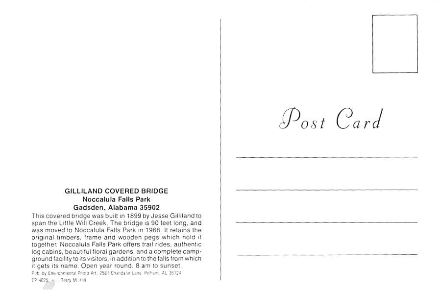 Noccalula Falls Park - Gadsden, Alabama Grade: 1 Category: Continental Size Postcard, Approx 4 in x 6 in (10 cm x 15.25 cm) Product Size: Continental size: 4X6 inches (10.5 cm x 15 cm) Grading Scale: Grade 1 = ... Read More