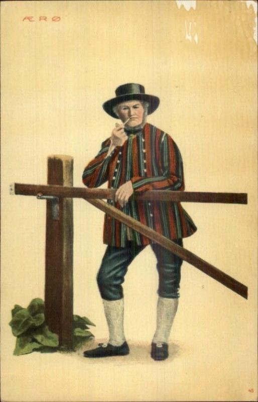Norge Norway Costume Man Smoking Pipe AERO c1910 Postcard