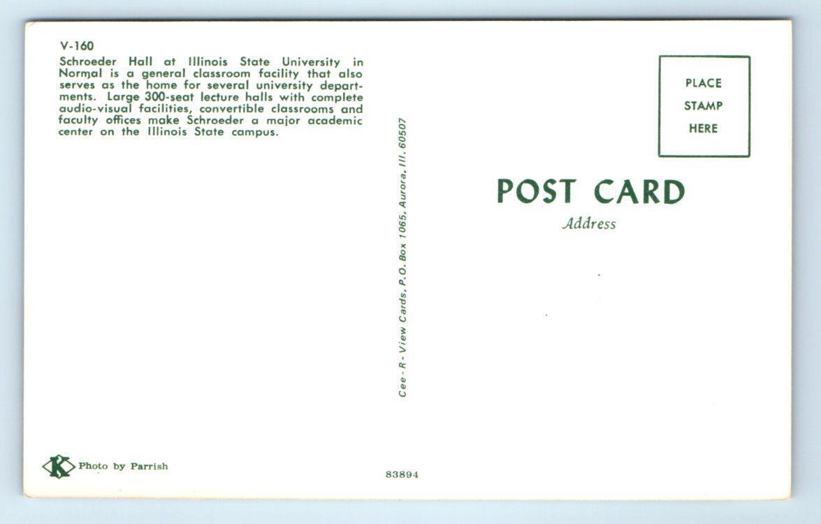 NORMAL, IL ~ Illinois State University ~ SCHROEDER HALL c1960s Postcard