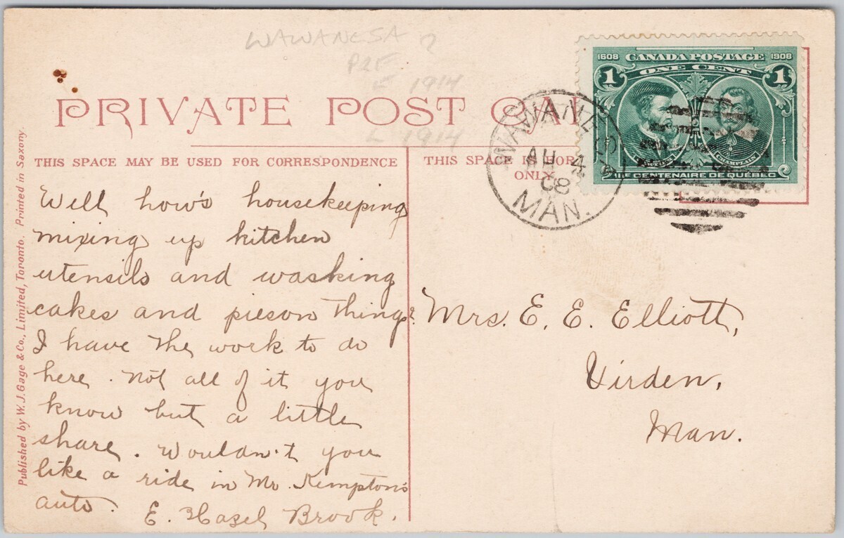 Normal School Toronto Ontario 1908 Wawanesa Manitoba Duplex Cancel Postcard D96Please zoom into and look closely at the front and back photos to view condition and feel free to send me a message if you have any questions. Thanks kindly for viewing, D