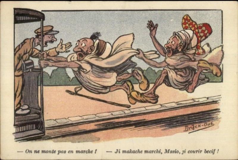 North African Muslims Run to Catch Train - Drack-Oue c1930 Postcard