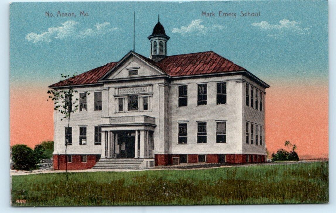 NORTH ANSON, Maine ME ~ MARK EMERY SCHOOL c1910s Somerset County Postcard