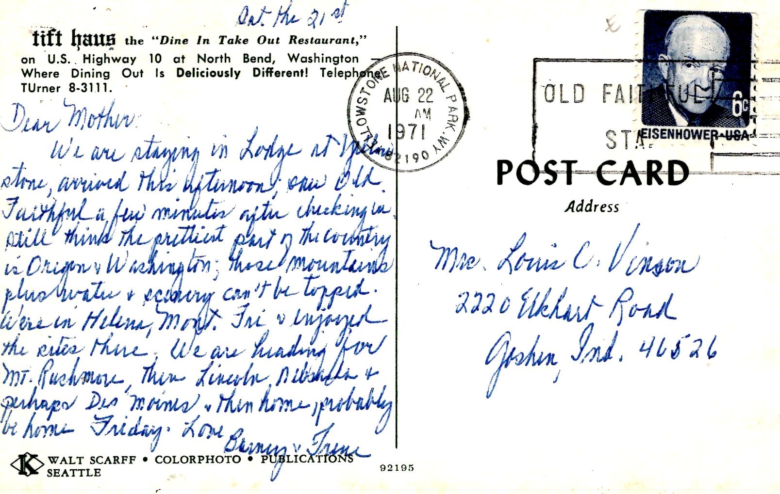 *Used/Unused: posted 1971 *Condition: EX Postcard Grades: * Nm - Near Mint, Fresh, Crisp, Unused Card * ex - excellent, very, very slight imperfections -used/unused * vf - very fine, slight imperfection ... Read More