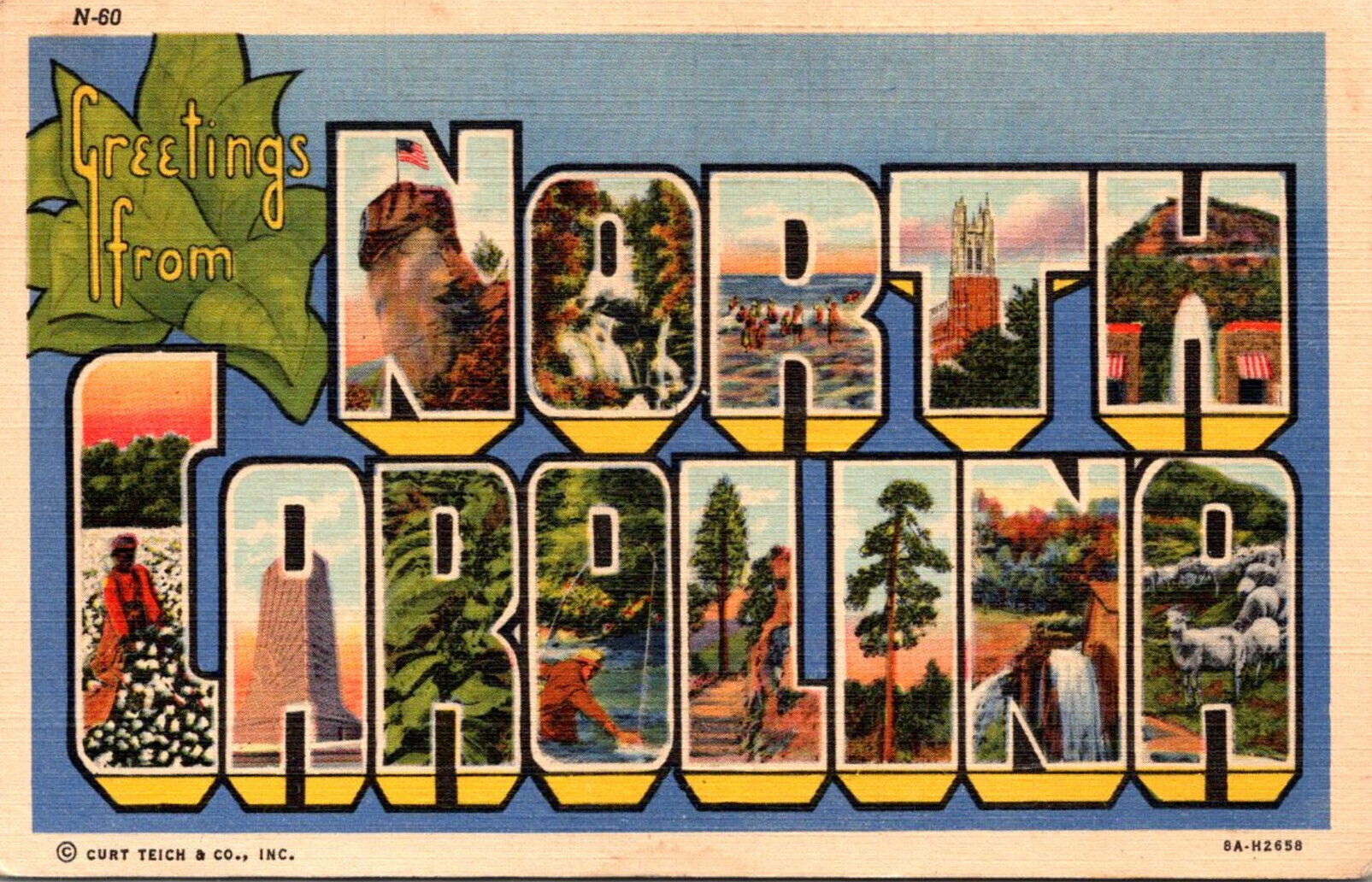 North Carolina Greetings From Large Letter Linen 1947 Curteich